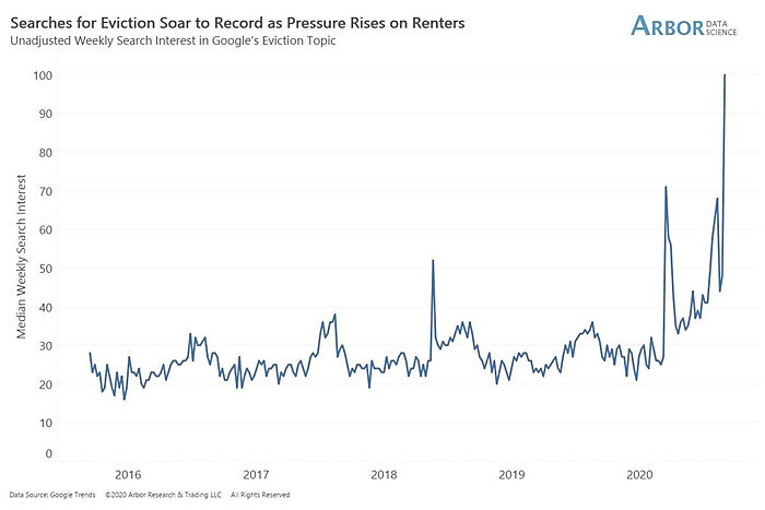 Other indicators, such as Google searches for “eviction,” also indicate increasing housing distress (though some of that is probably due to the CDC order):