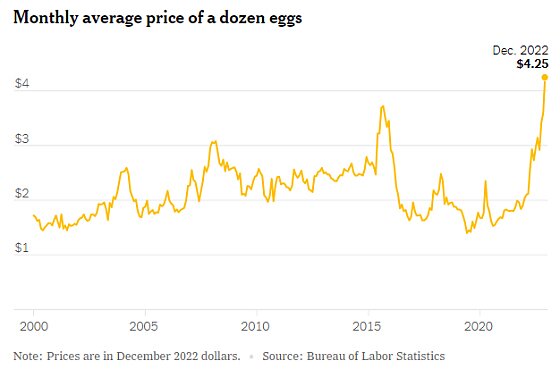 That “producer” is actually Cal-Maine Foods, the nation’s largest egg company, and it was also the target of a sternly worded letter from Sen. Elizabeth Warren and Rep. Katie Porter, which basically parrots the previous points about high egg prices and corporate profits and then generalizes about “greedflation” more broadly: “This is a pattern we’ve seen too often since the COVID-19 pandemic: companies jacking up their prices to pad their own profits, putting an additional burden on American families and the economy as a whole. … American families working to put food on the table deserve to know whether the increased prices they are paying for eggs represent a legitimate response to reduced supply or out-of-control corporate greed.” Warren and Porter sent basically the same letter to the other members of the Big Egg conspiracy.