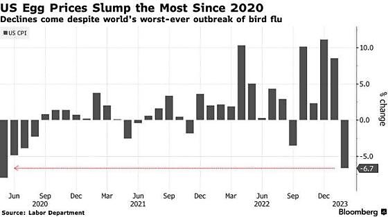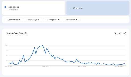 Waning media and politician interest likely reflects that regular folks have also stopped freaking out about eggs, almost certainly because prices have dropped (ha) and even some sales have hatched (ha ha):