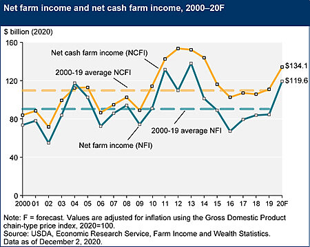 U.S. agriculture is on track for one of the three most-profitable years in a half century. Adjusted for inflation since 1973, projected net farm income in 2020 will be surpassed only by 2011 and 2013 figures.