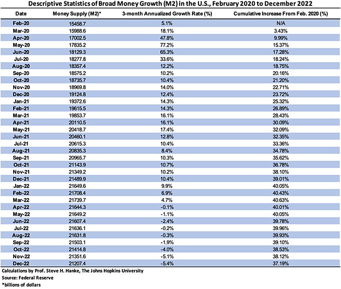 If the first monetary mistake is equivalent to putting your car’s gas pedal to the floorboard in heavy traffic, the second mistake is analogous to immediately putting your car in reverse and throwing yourself through the windshield. In May 2022, when the Fed announced its quantitative-tightening program, the money supply began shrinking. By December, the three-month annualized growth rate of M2 had sunk to a stunning ‑5.4 percent. This flipped the year-over-year growth rate of M2 into negative territory. Given the usual lag of six to 18 months predicted by the QTM, a recession is right around the corner.