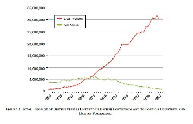 Research shows, for example, that as much as half of the first large increase in global trade—between 1870 and 1913 (aka “Globalization 1.0”)—was driven by the adoption of the steamship, which freed cargo vessels from being at the mercy of trade winds and thus shrunk shipping times (and therefore costs).