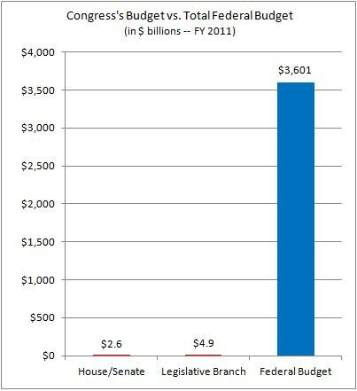 The following chart shows fiscal 2011 spending for the House and Senate, the entire legislative branch, and the entire government: