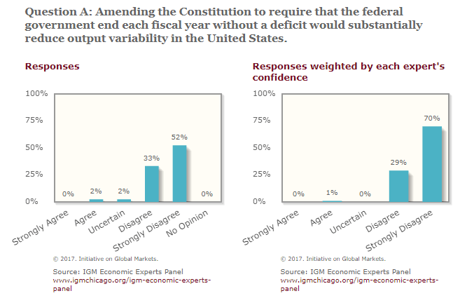 The IGM Economic Experts Panel overwhelmingly opposes a constitutional strict balanced budget amendment.