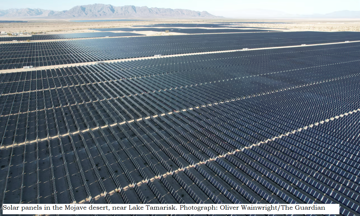 Solar panel and lithium battery manufacturing have very problematic supply chains. The Biden administration, for example, is subsidizing water-intensive lithium mining in arid regions of the West, which will cause added stress on already tapped-out rivers and aquifers.