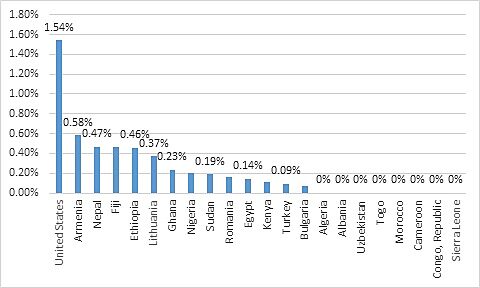 | United States | 3,193 | 20 | 0.63% | 0.00% |