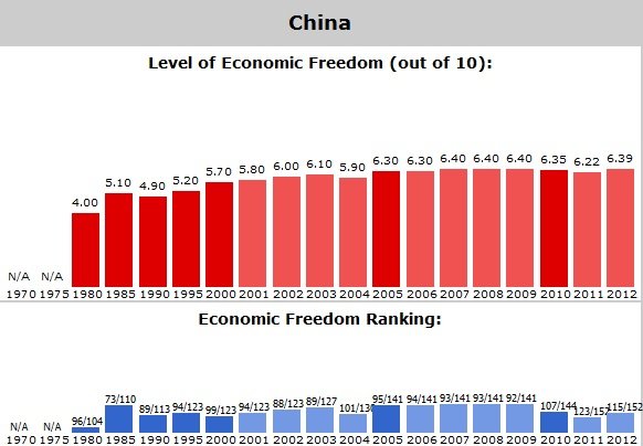 The bad news is that China still has a long way to go if it wants to become a rich, market-oriented nation. Notwithstanding big gains since 1980, it still ranks in the lower-third of nations for economic freedom.