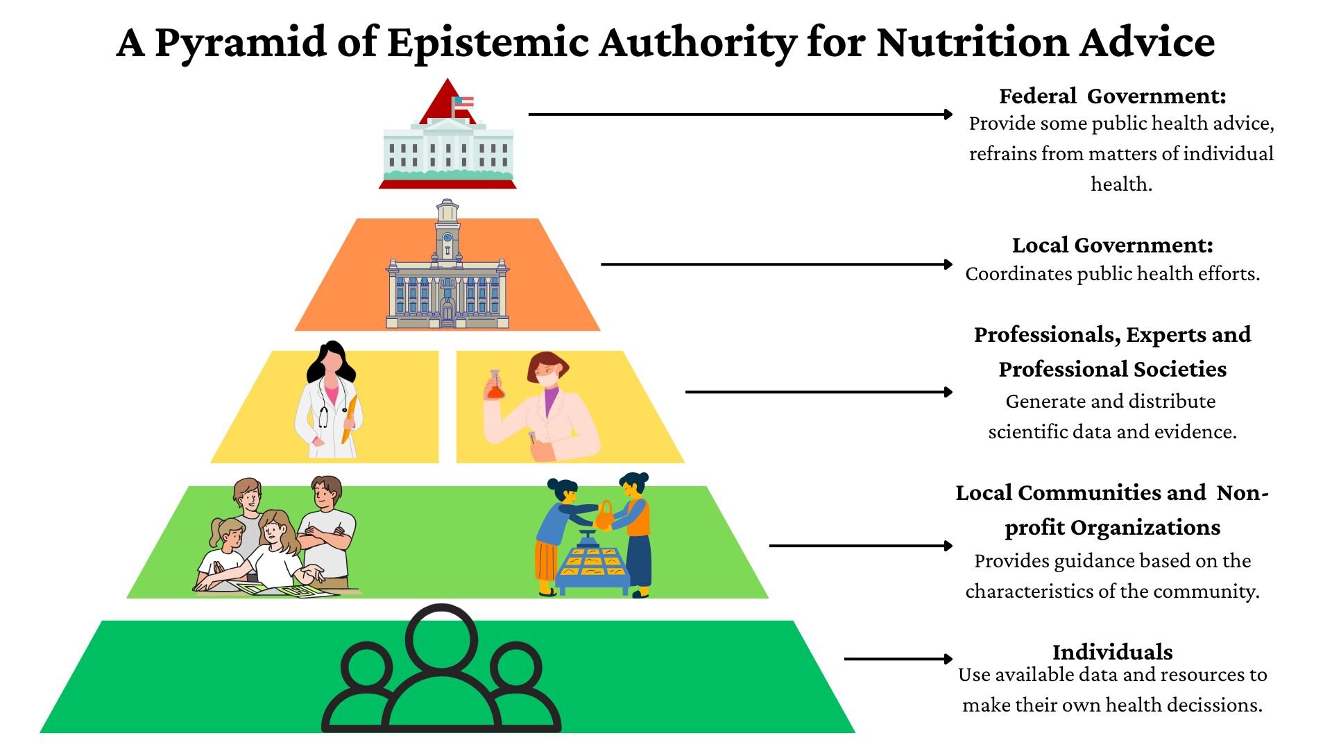 We conclude by proposing a different pyramid—not a pyramid of foods, but a pyramid of epistemic authority—one that places individuals and evidence at the base, communities and shared experience above them, professionals and expert institutions higher up, and government agencies at the narrow tip, where they belong: not absent, but least authoritative.