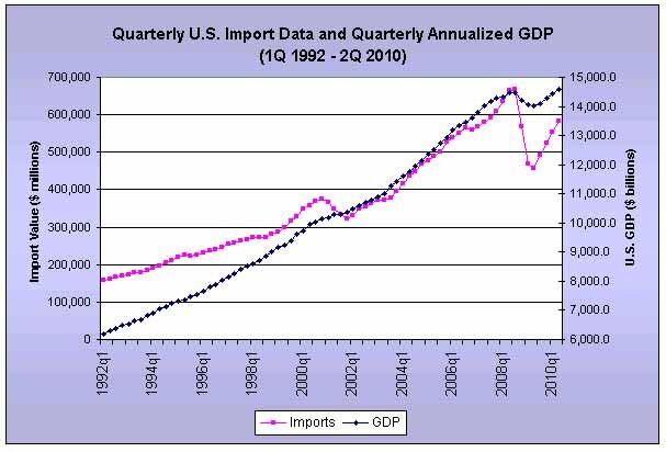 The bottom line is that neither imports nor trade deficits cause U.S. job loss or slower economic growth. If anything, the charts below (all compiled from BEA and BLS data) support the conclusion that imports and the trade deficit rise when the economy is growing and creating jobs, and they both fall when the economy is contracting and shedding jobs.