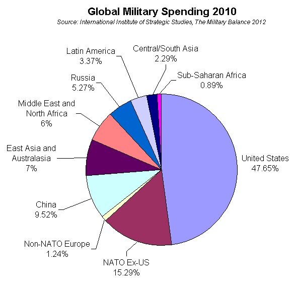 The data demonstrate that Americans in 2010 spent vastly more in every sense of the term. We accounted for 47.65 percent of global security spending. We each spent more than $2,200 on the Pentagon’s budget, and hundreds more when you factor in other security spending (e.g., Homeland Security, Veterans Affairs, and nuclear weapons). That represents a 72 percent increase in real, inflation-adjusted dollars since 1998, whereas the United Kingdom and Denmark increased by 5 and 6 percent, respectively. Six NATO countries saw per capita spending decline: Italy’s has fallen by 35 percent since 1998; France by 14 percent; and 12 percent in Portugal. The aggregate numbers paint a similar picture: between 1999 and 2010, U.S. spending as a share of GDP rose from 3.15 to 4.77, whereas the rest of NATO declined from 2.05 to 1.61 percent.