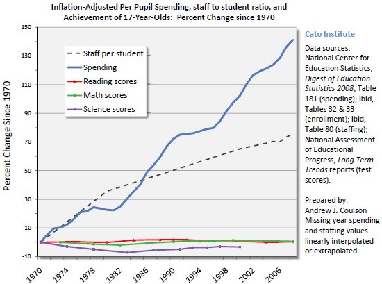 In a recent New York Times column (“The Uneducated American”), Paul Krugman writes that, “for the past 30 years our political scene has been dominated by the view that any and all government spending is a waste of taxpayer dollars.” As a result, Krugman continues, U.S. education has been “neglected” and “has inevitably suffered.”