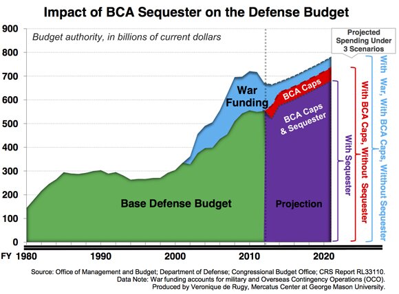 Finally, with regard to the actual military spending cuts that sequestration would impose, a new chart from Cato adjunct scholar Veronique de Rugy puts it in much-needed perspective: