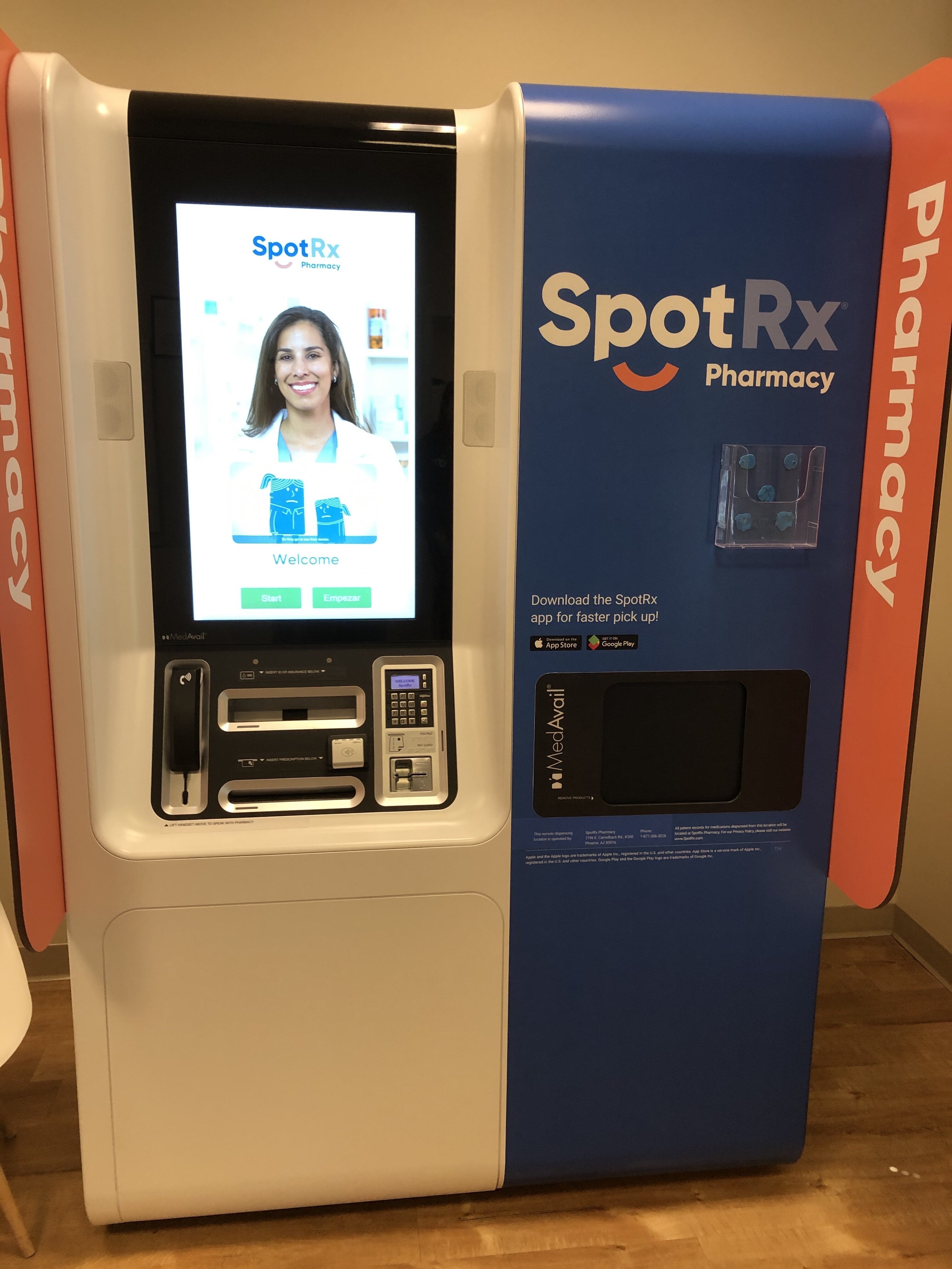 The Phoenix metro area has several kiosks operated by a retailer named SpotRx, manufactured by a company called MedAvail. SpotRX stocks the kiosks with medications and staffs them with a team of pharmacists who practice remotely. Because of concerns that the Arizona summer heat might harm drugs within the kiosks, most of them are kept in lobbies or entry-ways of buildings, although some are kept in the waiting rooms of medical clinics, and some SpotRx kiosks are inside Sam’s Club big box stores. An outdoor kiosk is maintained on a shady area of the Arizona State University campus in Tempe, AZ.