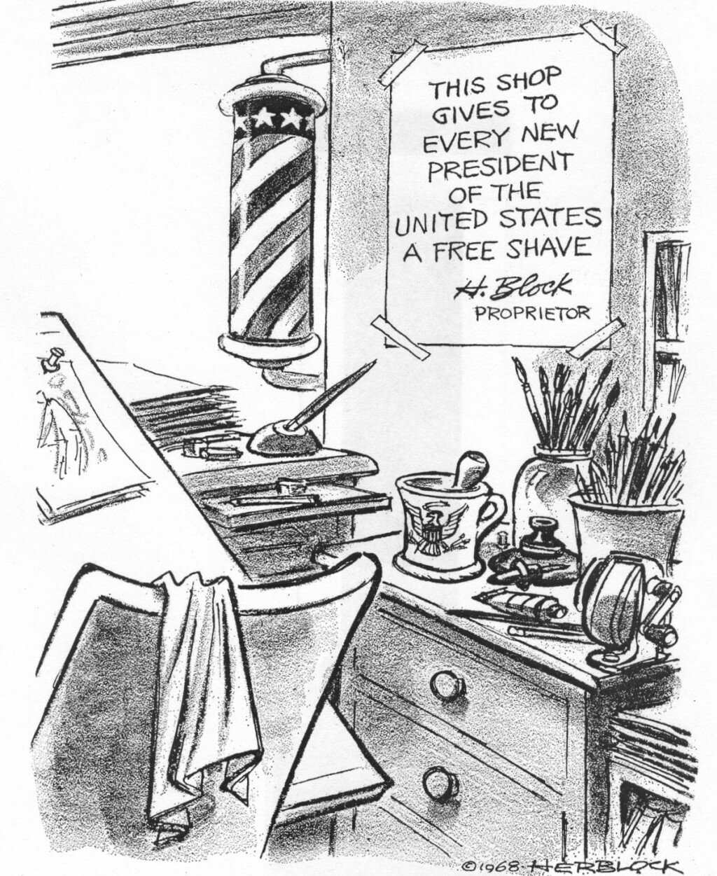 Whatever the misgivings I had about candidate Trump—and candidate Clinton—the election is over. Donald Trump will be the next president. Like all Americans, my colleagues and I will deal with that. I hope that when Trump puts his hand on the Bible and recites George Washington’s oath of office, he will indeed be inspired to put campaign rhetoric behind him and to preserve, protect and defend the Constitution of the United States. In 1968 the Washington Post columnist Herblock, who had savaged Richard Nixon for two decades, usually drawing him with a sinister 5 o’clock shadow, drew a cartoon depicting his office as a barbershop and wrote, “This shop gives to every new president of the United States a free shave.”