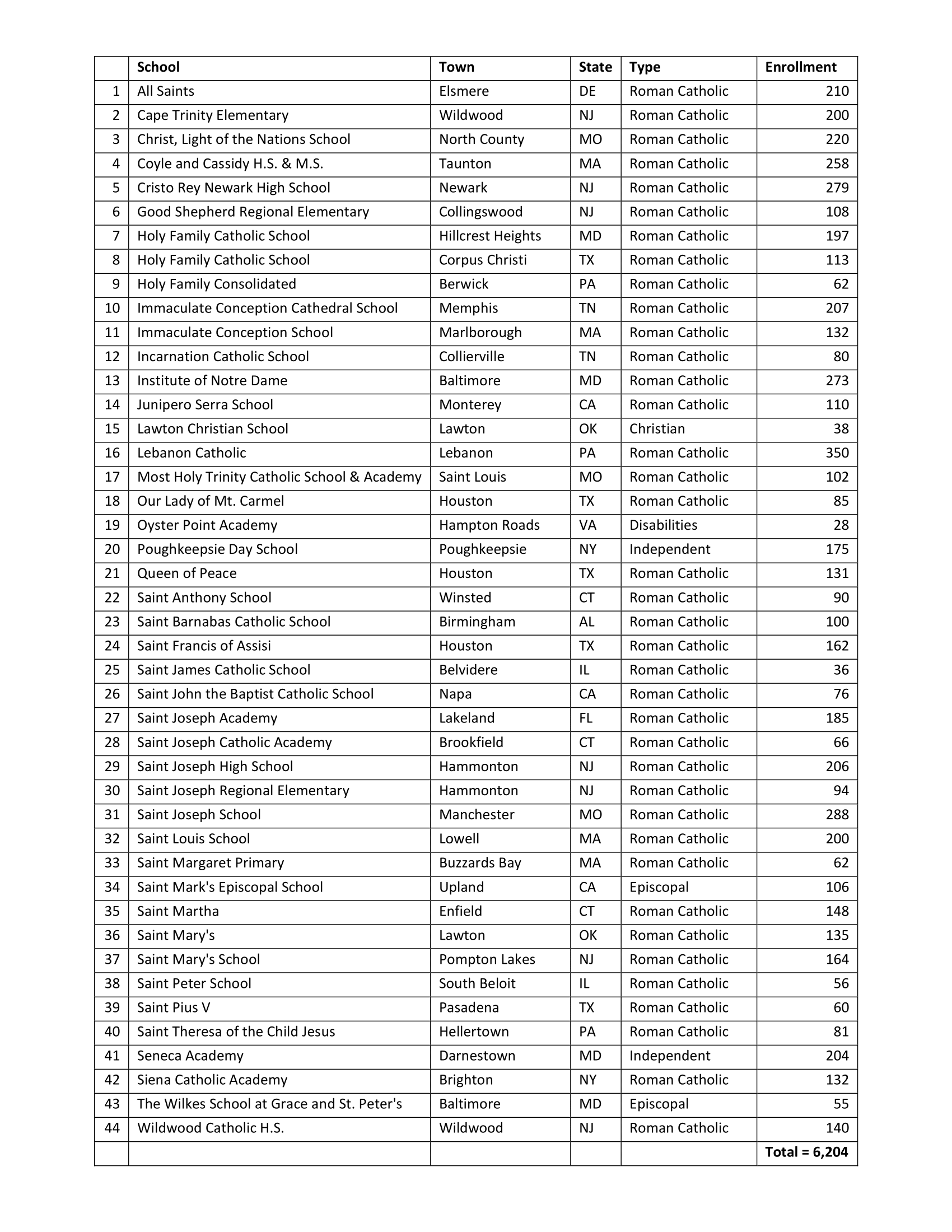 44 private schools have announced that they are closing permanently, at least in part due to the COVID-19 economic downturn, up from 33 in last week’s update. Enrollment in the closing schools, which in a few cases is estimated, is 6,204, up from 5,690 last week. Were all of these students to go to public schools, and had none been part of publicly connected school choice such as voucher programs or scholarship tax-credits, the new cost to the public purse would be roughly $96,000,000 ($15,424 per student multiplied by 6,204).