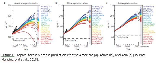 Huntingford, C. et al., 2013. Simulated resilience of tropical rainforests to CO2-induced climate change, Nature Geoscience, 10.1038/NGEO1741.