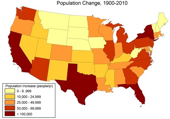Figure 1. The state-by-state population trend (people/year) from 1900 to 2010 (data from U.S. Census Bureau).