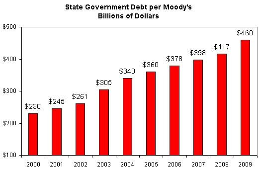 State debt outstanding doubled from $230 billion to $460 billion in just nine years, 2000 to 2009.