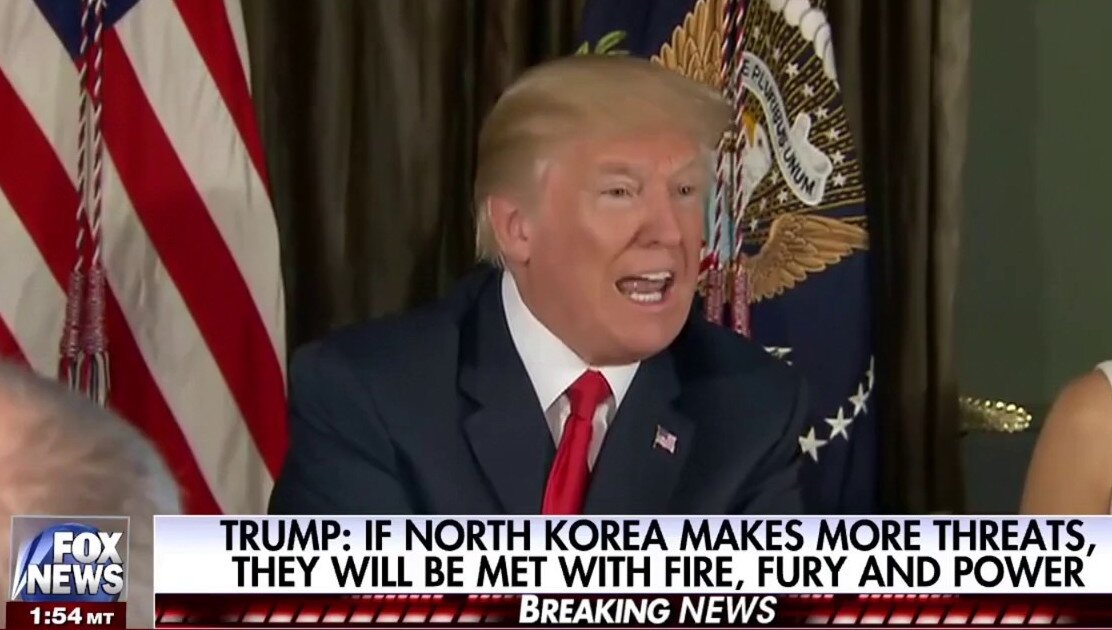 Last week, recall, Trump threatened North Korea with nuclear annihilation: “North Korea best not make any more threats to the United States…. They will be met with fire, fury and frankly power the likes of which this world has never seen.” “Fire and fury” was ad-libbed, apparently, but on Thursday, he upped the ante: “if anything, that statement may not be tough enough.” (For a cooldown lap, on Friday, Trump warned he was “not going to rule out a military option” in Venezuela.)