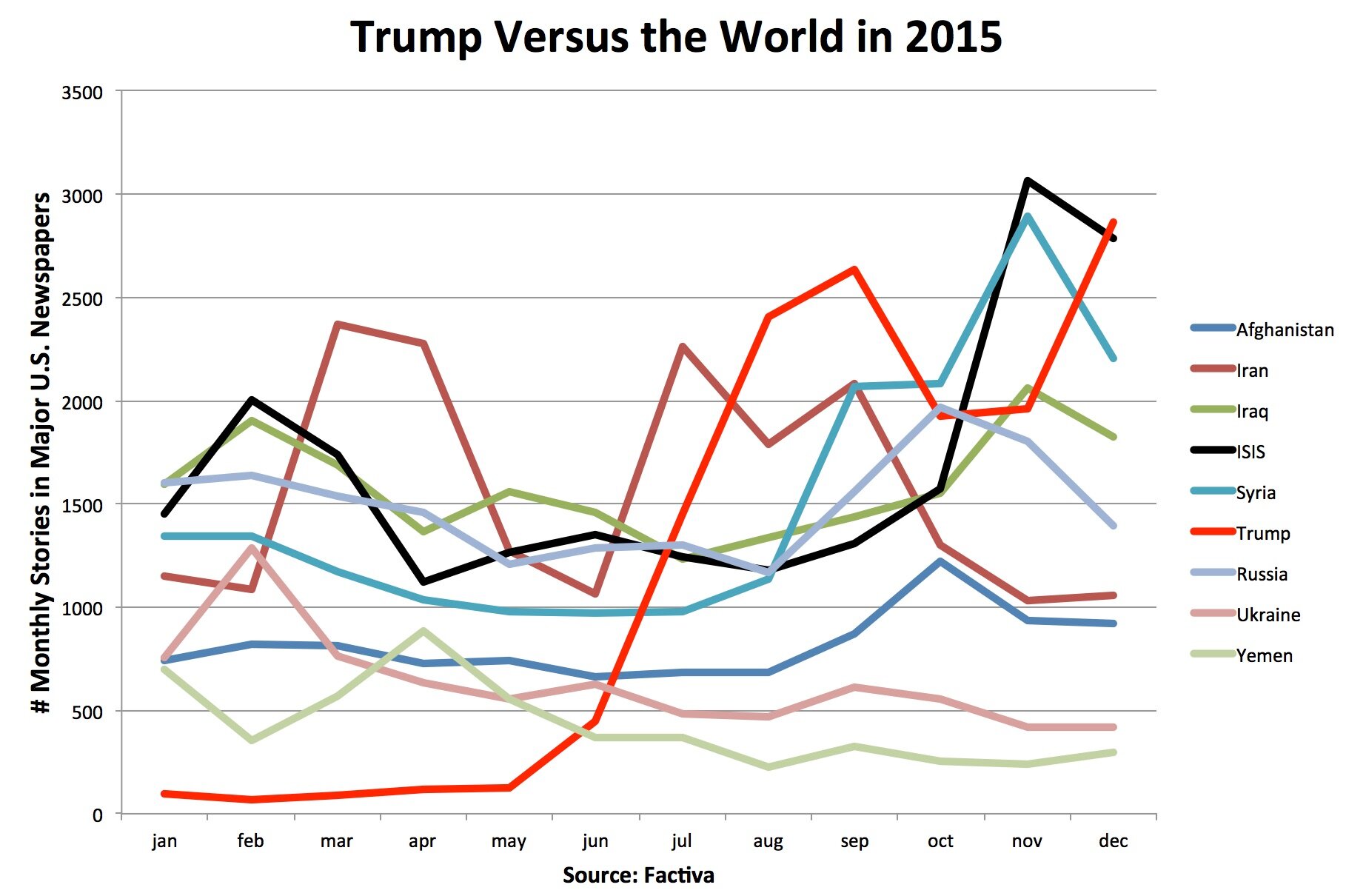 In 2015 we witnessed an astonishing sight: by the end of the year news coverage of Donald Trump in major U.S. newspapers eclipsed coverage of every major world hotspot and the dreaded Islamic State.