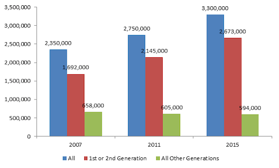 While the number of Muslim immigrants and their children increased by nearly 60 percent from 2007 to 2015—from 1.7 million to 2.7 million—the native Muslim population actually fell by 10 percent—from about 658,000 to 594,000. This provides evidence that the immigrants themselves are taking part in the recent changes.