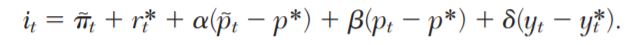 As in the Taylor rule, this specification can be viewed as a benchmark for adjusting the real interest rate in response to fluctuations in economic activity and prices. In particular, the ex post real interest rate is given by the nominal interest rate (it) adjusted for core inflation