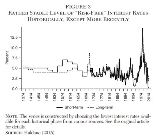 Thus, the ultimate anchor of the monetary system is not the monetary base but the interest rate the central bank sets. Moreover, there is clearly an element of convention in how interest rates are set nowadays — that is, in how one chooses the point along a de facto vertical demand curve for reserves. This raises questions about how interest rates may have been set before the creation of central banks. As one might infer from the long-run stability of the short-term nominal interest, convention may well have played a bigger role than typically thought (Figure 3). Data limitations aside, this issue deserves further study.16