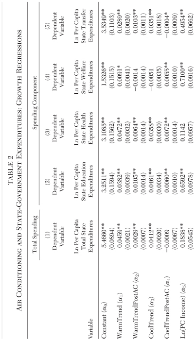 Our empirical work supports our hypothesis. We find that the annual rate of growth in expenditures for warmer states was significantly higher after the introduction of air conditioning in these state capitols than was the annual growth of expenditures in cooler states. In addition, we also find that the growth rates for each of several components of government spending — education, health care, transfer to local governments — were significantly higher in warmer states after the introduction of air conditioning compared with cooler states. Similar results were obtained with per capita expenditures. Both our conceptual framework and empirical results not only contribute to the literature on government growth, but they also provide a contribution to the literature on the productivity effects of air conditioning.