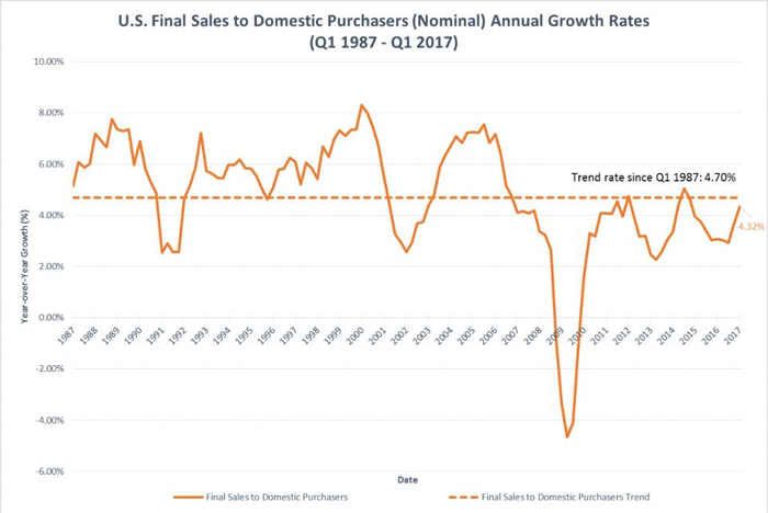 U.S. final sales to domestic purchasers, nominal annual growth rates.