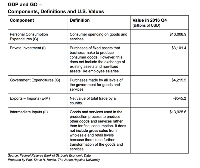 Importantly, we now have official supply-side data on the structure of the economy, namely gross output (GO). And when it comes to the public and the debate about public policies, there is nothing quite like official data. GO measures total economic activity at all stages of production. It is analogous to “topline” (read: total revenue or sales) data in business financial statements. It is reported on a quarterly basis, with 2016 Q4 being the most recent. GO data will complement, not replace, traditional GDP data, which are “bottomline” data, analogous to gross profits on business financial statements. GO data will improve our understanding of the magnitude of business activity and our understanding of the business cycle.