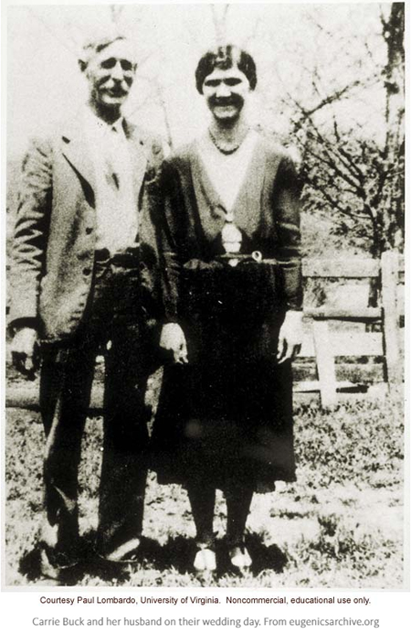 We know Carrie's story because her case eventually made it to the Supreme Court. But to the Commonwealth of Virginia in the 1920s, Carrie was just another congenitally "feeble-minded" woman who, in the parlance of the times, had a tainted "germ plasm" that would create generations of "socially inadequate defectives" if she were allowed to procreate freely. Carrie is the most famous of the at least 60,000 Americans who were forcibly sterilized in order to "cleanse the race" of undesirable genes.