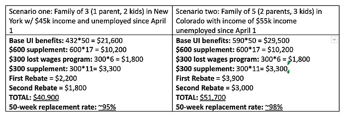 The academic debate over supplemental UI and labor supply continues to rage—Goldman’s economists see a big effect (more than 1 million jobs), others see smaller ones (or say it’s too soon to say), and others still see little to none. (I recommend reading the links here before yelling about UI in the comments!) Most of that debate, however, ignores other forms of government assistance and Americans’ overall financial cushion—factors that, when combined with psychological or emotional changes brought on by the pandemic, could let many workers remain out of the labor market for far longer than most economists expect, maybe even permanently.