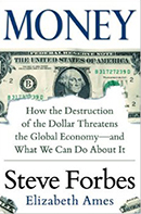 In Money: How the Destruction of the Dollar Threatens the Global Economy, Steve Forbes and coauthor Elizabeth Ames explain how the lack of any anchor for the U.S. dollar after President Nixon closed the gold window in August 1971 has increased uncertainty and put us on a pure discretionary government fiat money system. The Federal Reserve, now in its 100th year of operation, has become a central bank that serves as the fiscal agent of a profligate government, not the guardian of sound money. The authors argue that the 2008 financial crisis would not have occurred under a true gold standard, nor would government have become the bloated Leviathan it now is. They advocate returning to the hallmark of a liberal economic order — namely, a stable-valued dollar convertible into gold.