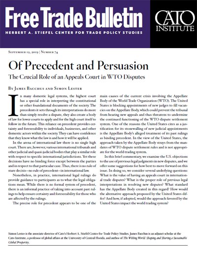 In this brief commentary, we examine the U.S. objections to the use of previous legal judgments in new disputes, and we offer some suggestions for how best to move forward on this issue. In doing so, we consider several underlying questions: What is the value of having an appeals court in international trade disputes? What is the proper role of previous legal interpretations in resolving new disputes? What standard has the Appellate Body created in this regard? How would the alternative approach proposed by the United States differ? And how, if adopted, would the approach favored by the United States impact the world trading system?