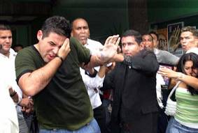 Yon Goicoechea being attacked by Chávez supporters outside the Pedagogical Center in Caracas. Yon ended up with a broken nose after this incident.