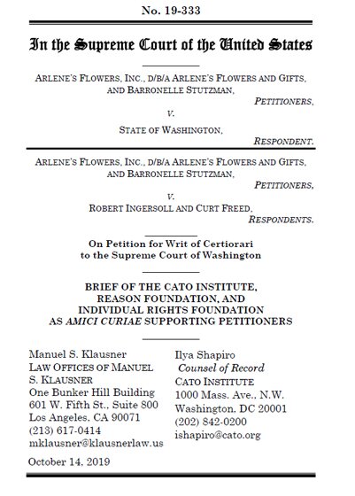 As it has in previous stages of this litigation, Cato has filed an amicus brief supporting Arlene’s Flowers—again joined by Reason Foundation and Individual Rights Foundation—urging the Supreme Court to take up the case and settle these issues and ambiguities after all. Cato is the only organization in the country to have filed briefs in support of both Jim Obergefell (lead plaintiff in the Supreme Court’s same-sex marriage case) and Jack Phillips (owner of Masterpiece Cakeshop). It shouldn’t be so hard to see the difference between government action and individual conscience, to have official equality while letting a thousand flowers bloom.