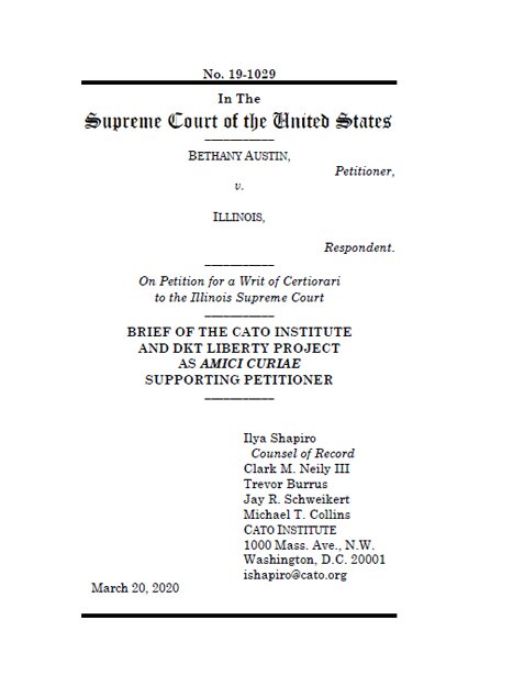 Responding to the complaints of the ex-fiancé and his paramour, Illinois charged Ms. Austin under the revenge porn law. She moved to dismiss the criminal charges against her, citing the First Amendment protections for her speech. The trial court found the law unconstitutional, but the Illinois Supreme Court reversed. Cato, joined by DKT Liberty Project, has filed a brief supporting Ms. Austin’s petition to the U.S. Supreme Court, arguing that the Illinois court incorrectly distinguished between private and public speech and that, in any event, the state law is not a content-neutral time, place, and manner restriction, and is overbroad.