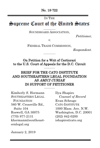 Cato, joined by the Southeastern Legal Foundation, has filed a brief in support of Soundboard Association’s petition before the Supreme Court. We argue that a reviewing court must indeed look at the challenged action from the regulatory target’s perspective. This is not to say that the agency’s view is unimportant, but the suggestion that the actions of subordinate officials don’t produce legal consequences for regulated industries is a bureaucratic fiction that gets in the way of reality.