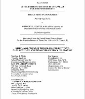 Speech First has appealed the trial court’s denial of a preliminary injunction and its dismissal of Speech First’s case to the Fifth Circuit. Together with the Goldwater Institute and the Texas Public Policy Foundation, Cato has filed a brief in support of Speech First’s appeal. We argue that Speech First has standing to sue because it is objectively reasonable for students with conservative or libertarian opinions to self-censor when faced with speech policies like the ones that the university has adopted. Recent incidents at colleges across the country establish that expressing unpopular ideas on campus frequently leads to formal discipline, forced apologies, and the defunding of conservative and libertarian student groups. The consequences for students can be serious, and official university disciplinary actions such as those permitted by the university’s rules can cause long-term damage to students’ ability to seek future educational or employment opportunities.