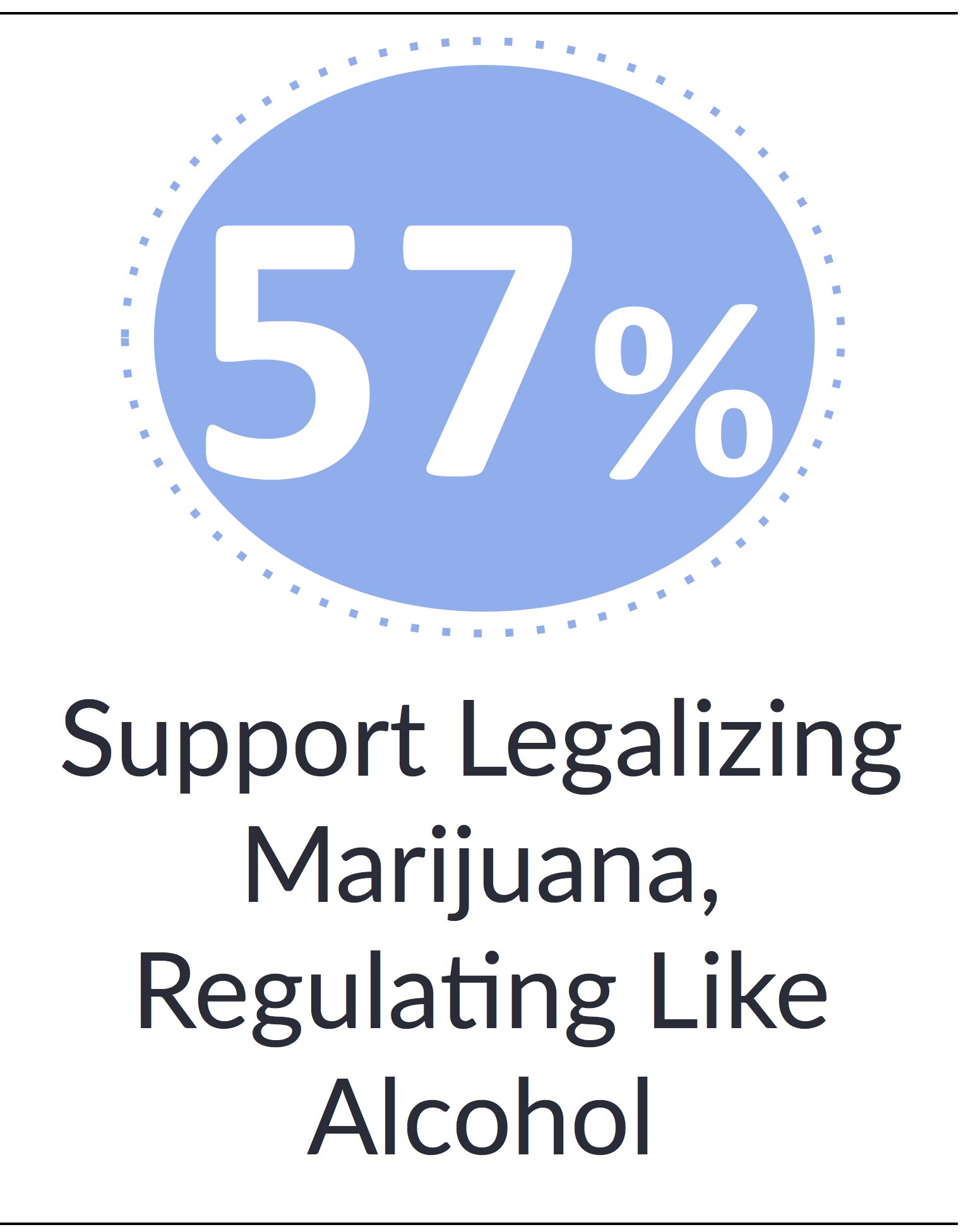 Fifty-seven percent (57%) of Americans say they would favor legalizing marijuana and having the government regulate it like alcohol. Only 15% favor a similar policy for drugs like cocaine.