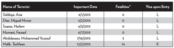 The December 2, 2015, terrorist attack that left 14 people dead in San Bernardino, California, was committed by American-born Syed Rizwan Farook and his foreign-born wife, Tashfeen Malik, who entered the United States two years earlier on a K-1 fiancé(e) visa.1 Their attack was dramatic and brutal, and it prompted calls for heightened immigration restrictions, additional security checks for K-1 immigrants, and even a complete moratorium on all immigration.2