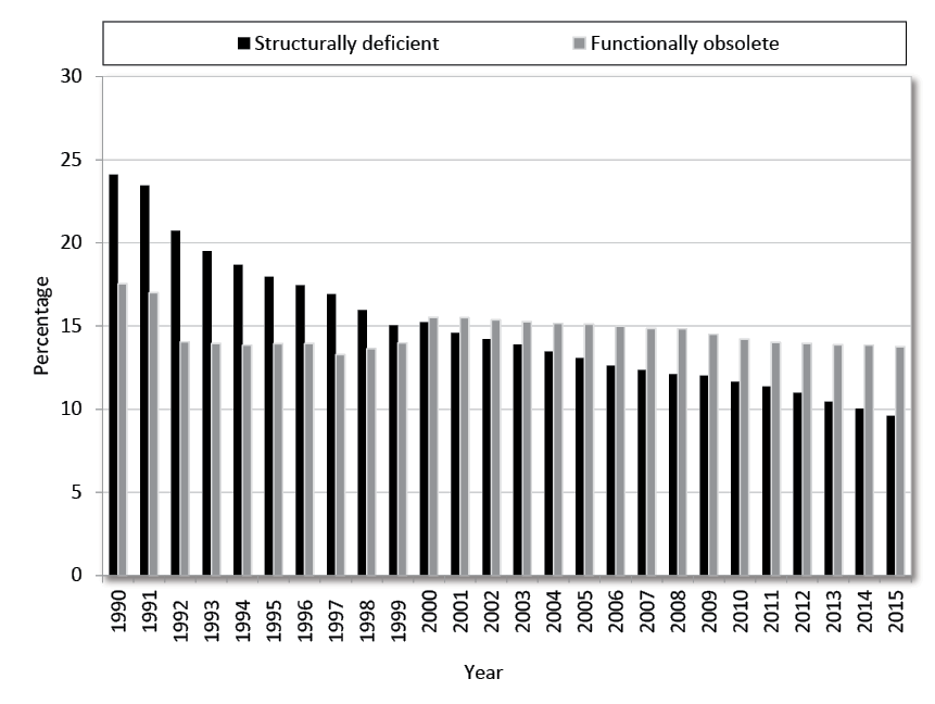 - U.S. Bureau of Transportation Statistics, “Condition of U.S. Highway Bridges,” U.S. Department of Transportation, https://www.rita.dot.gov/bts/sites/rita.dot.gov.bts/files/publications/national_transportation_statistics/html/table_01_28.html.