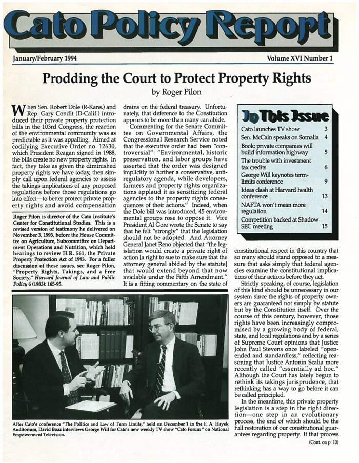 January/February 1994 Vol. 16 No. 1 Download PDF Share From the Cover Prodding the Court to Respect Property Rights By Roger Pilon Features Rights and Responsibilities By David Boaz Latest Issues September/October 2023 July/August 2023 May/June 2023 March/April 2023