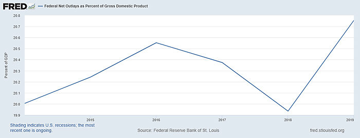 Things are far clearer, however, on the spending side, where Trump gets much lower marks—not just continuing past spending trends but actually accelerating them a bit (pre-COVID). I documented most of these spending trends in my recent newsletter edition on “Libertarian Economics,” but here’s one more chart just to hit things home: