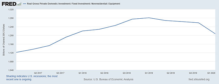 And just as the trade war was hitting high gear at the end of 2018, domestic investment—which was supposed to be stoked by tax reform—started sagging (coincidentally, I’m sure!):