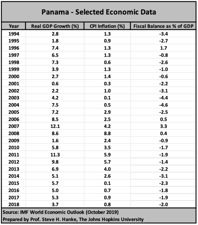 The results of Panama’s dollarized monetary system and internationally integrated banking system have been excellent (see the table below).