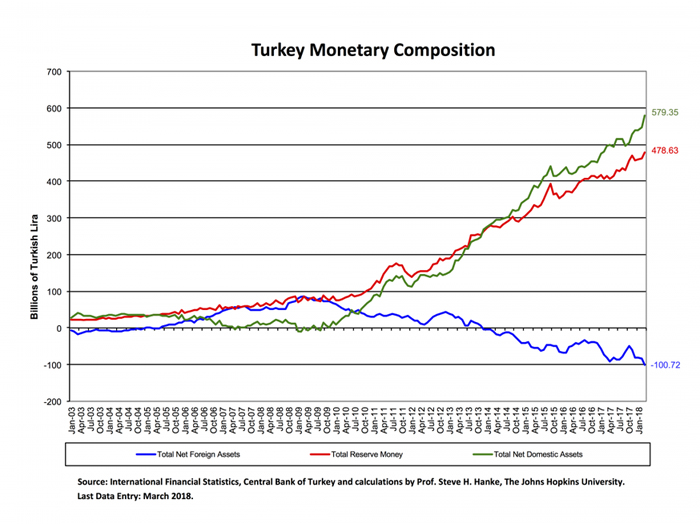 This supply-side quantity problem has been accompanied by a quality problem, too. Indeed, the quality of the money supply (high-powered reserve money) has been deteriorating since 2008. Since the summer of 2009, the net foreign reserves of the Central Bank’s balance sheet have plunged from over 100% of reserve money into negative territory. To keep the money supply growing, the Central Bank has replaced its disappearing foreign assets with lira-denominated assets. That ugly picture is shown below.