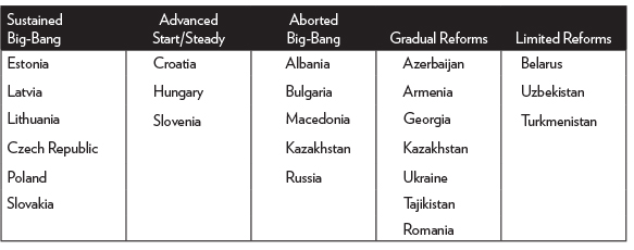 In 2013, Christopher Hartwell of the Center for Social and Economic Research in Warsaw offered a detailed history of the actual sequence of reforms that were followed in ex-communist countries, as well as the nature of the IMF, World Bank, and EBRD advice to the transition countries.37 He made a powerful counterargument against the contention that institutions were ignored. His conclusions support our view that it was not the international financial institutions or big-bang reformers who ignored institutional development, rather, it was the political leadership of the slow-reforming countries that did so.