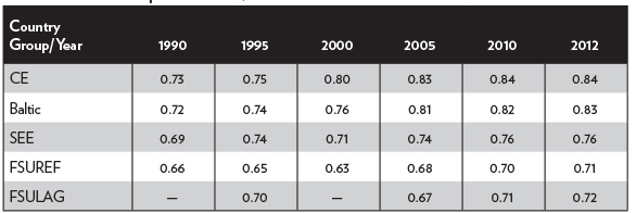 Table 4. The Human Development Index, 1990–2012