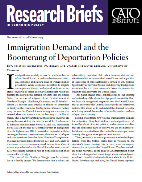 This research brief is based on Christian Ambrosius and David Leblang, “Immigration Demand and the Boomerang of Deportation Policies,” August 14, 2019, https://papers.ssrn.com/sol3/papers.cfm?abstract_id=3491522.